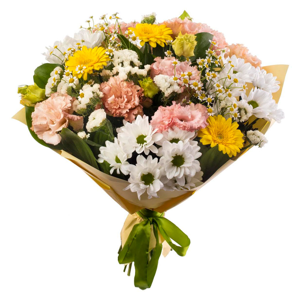 Хризантема кустовая, эустома, гербера мини, статица, хризантема мелкоцветная.