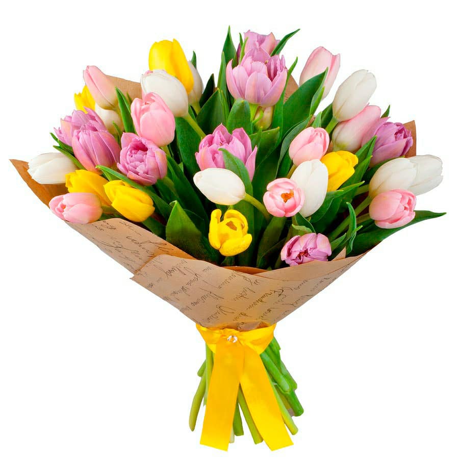 Тюльпан белый, тюльпан желтый, тюльпан розовый.